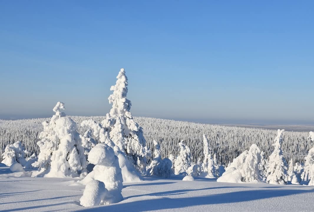 W Parku Narodowym Riisitunturi zobaczymy zapierające dech w piersi widoki na niekończącą się tajgę i niezwykle czyste, skute lodem jezioro Kitkajärvi oraz szczyty kurortu narciarskiego Ruka i wspaniale ośnieżone drzewa o fantazyjnych kształtach, po fińsku zwane "tykky".